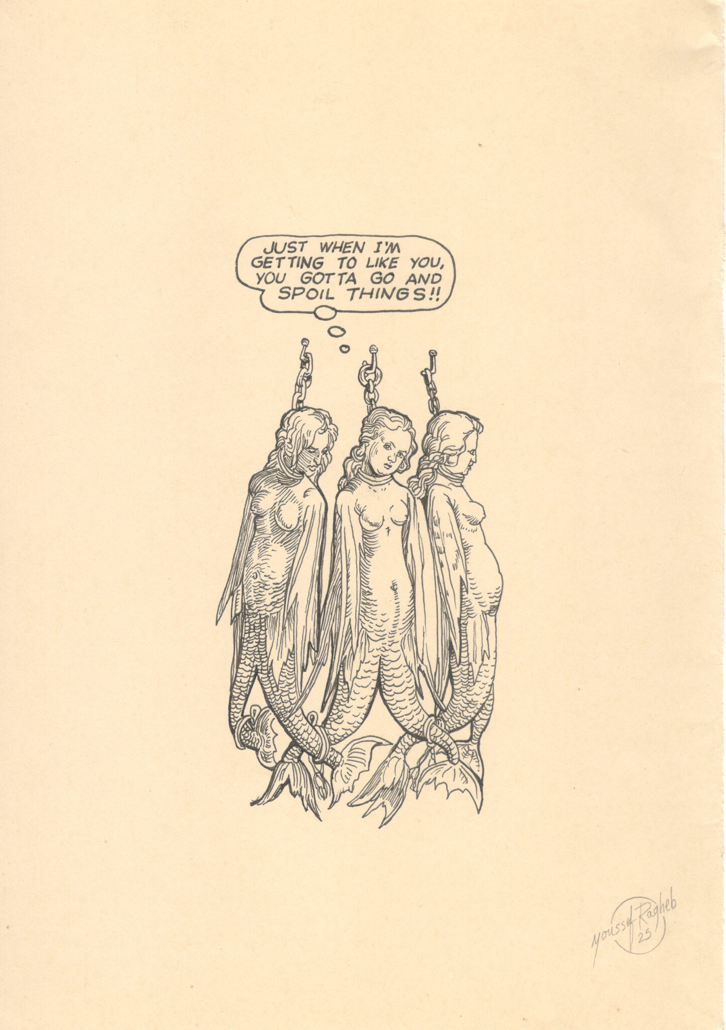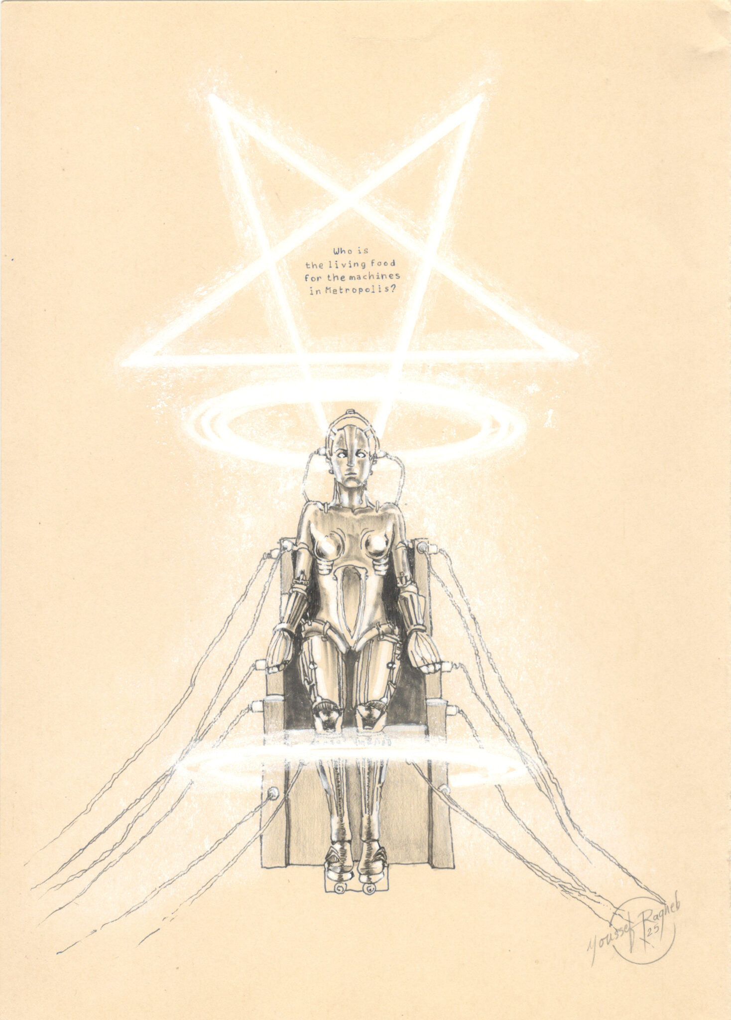 From Fritz Lang’s Metropolis to medical illustration and pop culture, Youssef Ragheb Draws upon a large archive of public domain visuals, to recreate a reinterpretation of the succubus through the narrative of mythology, film, Japanese manga, modern day memes and texts.